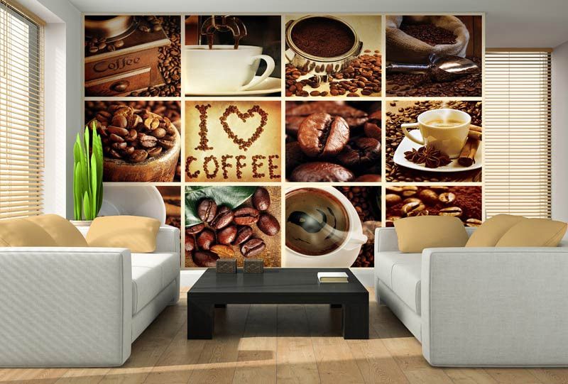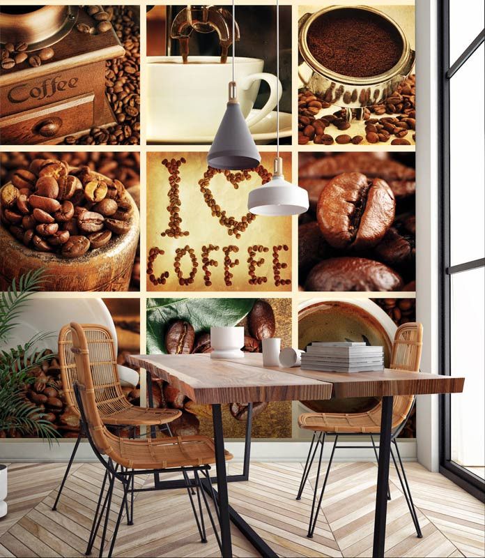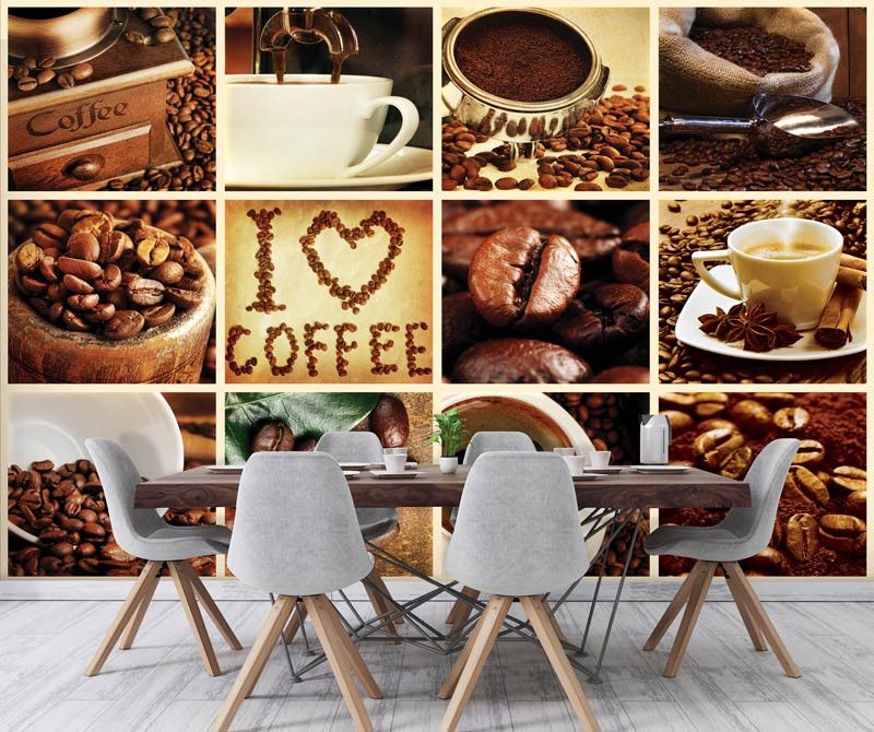 Vlies fotobehang van een prachtige collage met daarin alles voor de koffieliefhebber.
