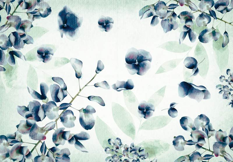 Fotobehang van prachtige, inktgekleurde, bloemen en bloemblaadjes.