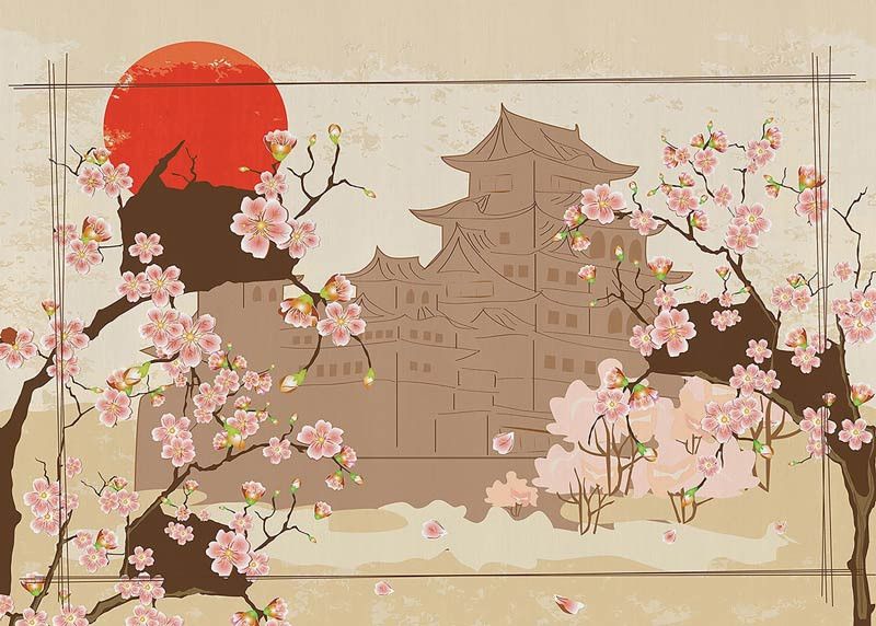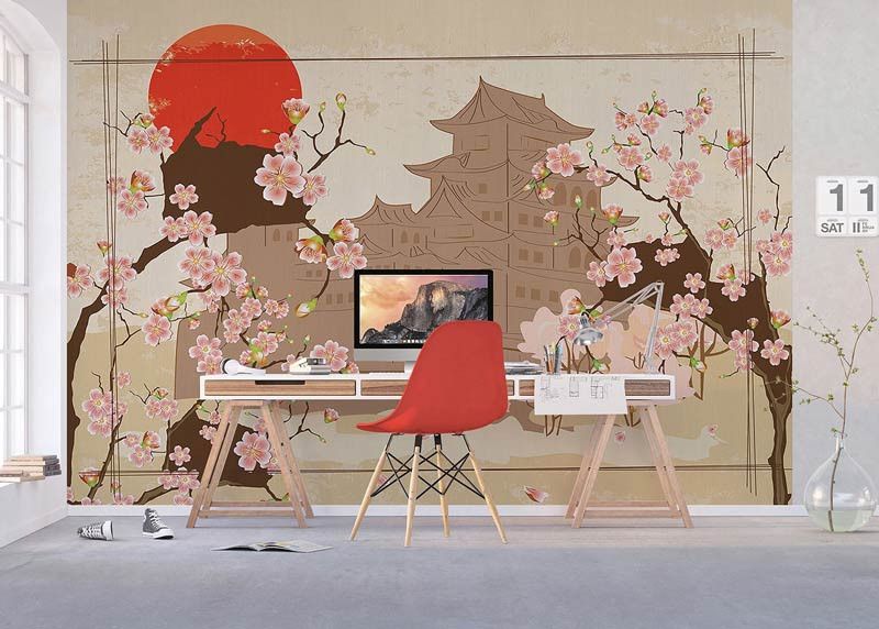 Laat je meevoeren naar de serene wereld van Japan met dit prachtige fotobehang. De subtiele kleuren, waaronder delicate roze en groene tinten, geven de ruimte een kalme en vredige sfeer, terwijl de details van traditionele Japanse elementen de culturele elegantie benadrukken.