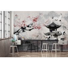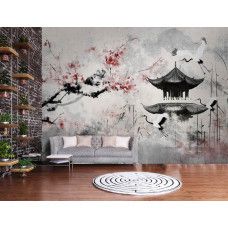 Breng de verfijning van Japanse kunst in huis met fotobehang Japanse kersenbloesem en reigers in kunststijl. Dit betoverende ontwerp combineert sierlijke reigers met delicate kersenbloesem in een artistieke stijl, wat een harmonieus en elegant geheel creëert. De zachte kleuren en vloeiende lijnen roepen een serene sfeer op, perfect voor liefhebbers van Oosterse kunst en natuurlijke schoonheid.
