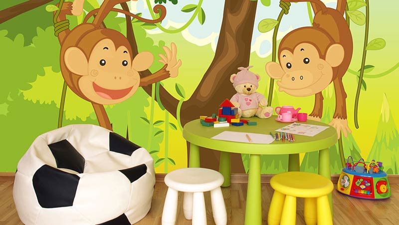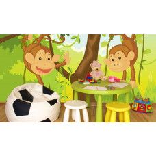 Het fotobehang van de aapjes is echte eyecatcher in de: kinderkamer en babykamer.