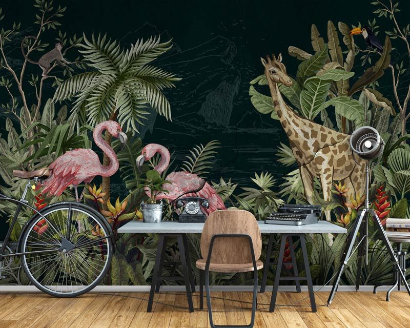 Haal de jungle en de kleurrijke dieren bij je in huis met dit schitterende jungle fotobehang.