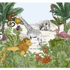 Dit prachtige fotobehang is bekleed met jungle dieren. Op de voorgrond van het behang is in prachtige waterkleuren getekend. Op de achtergrond bevindt zich een in het wit, grijze kleurenpalet. Met dit behang breng je in no-time het jungle gevoel binnenshuis.