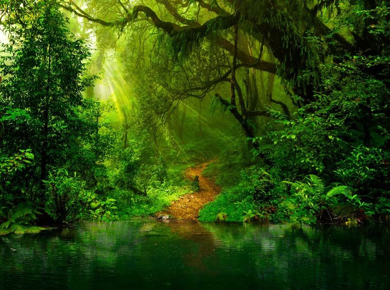 Ontdek de mysterieuze pracht van Fotobehang Jungle Magie. Waan jezelf in een betoverend regenwoud, waar exotische planten en kleurrijke bloemen worden verlicht door de zachte stralen van de zon. Laat je meevoeren door de magie van de jungle en ontdek de verborgen geheimen die schuilgaan tussen de weelderige vegetatie.
