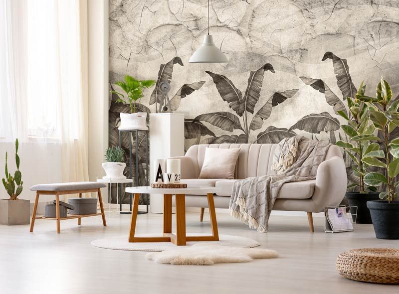 Haal de natuur bij je binnen met ons fotobehang van jungle planten en bladeren op een betonnen muur. Of je nu een modern interieur hebt of een meer traditionele inrichting, ons fotobehang van jungle planten en bladeren past perfect bij iedere stijl.