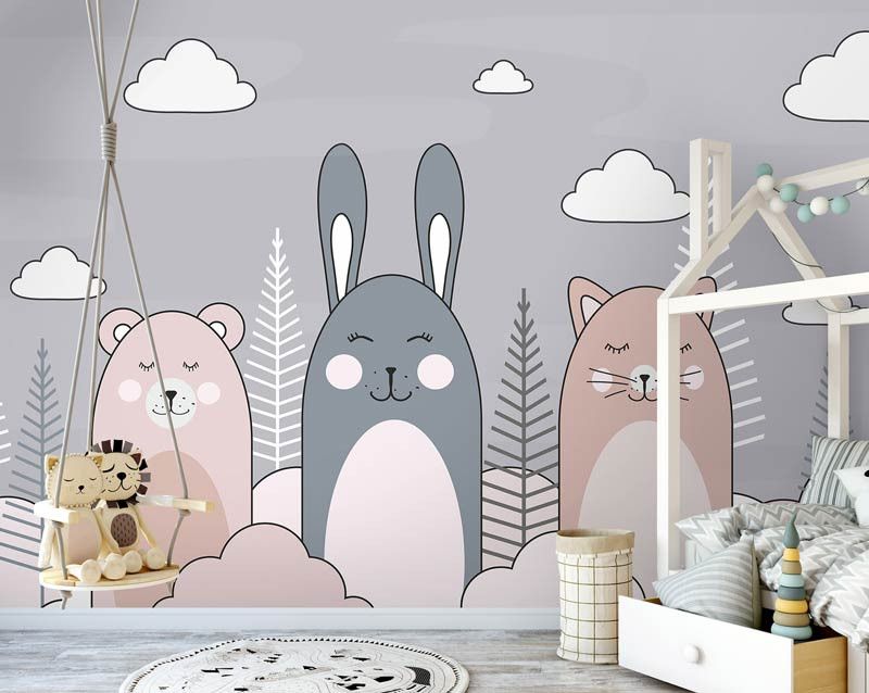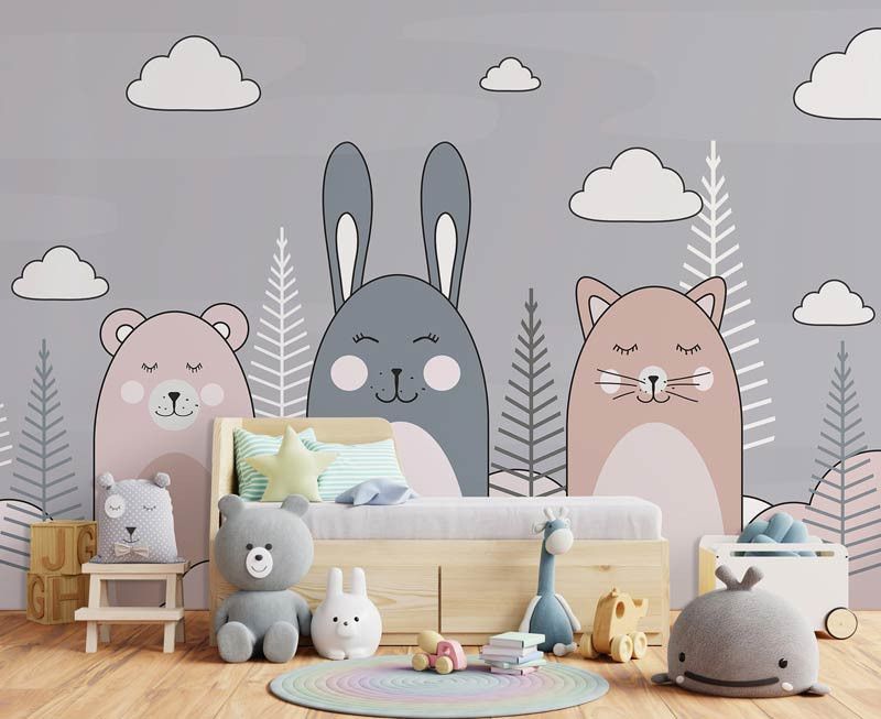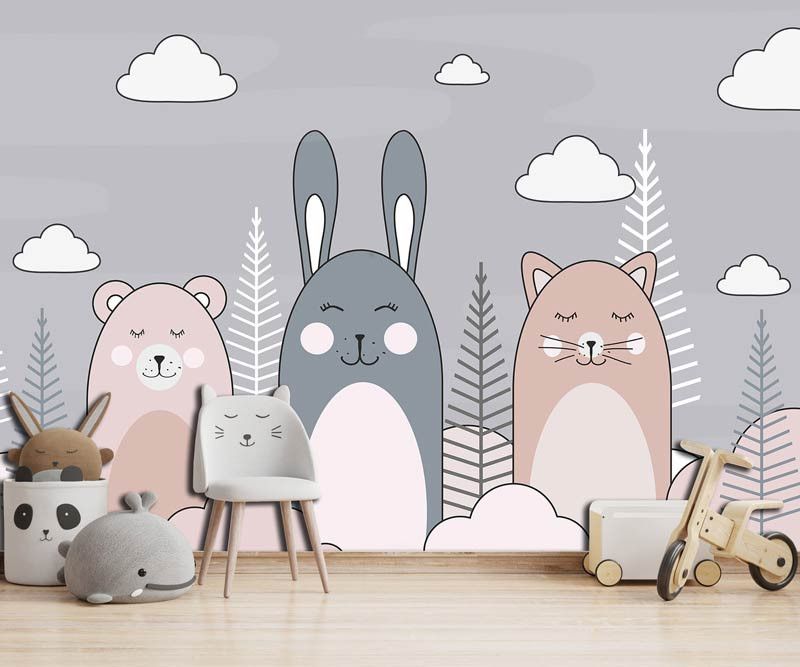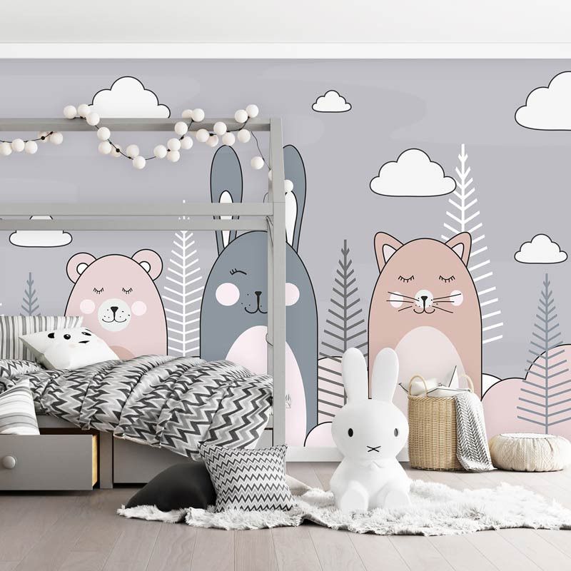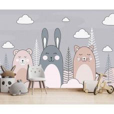 Creëer een schattige en speelse sfeer in de kinderkamer met ons Fotobehang Kat, Konijn en Teddybeer. Dit charmante fotobehang toont een trio van lieve dieren die samen plezier maken, waardoor een gevoel van warmte en gezelligheid wordt opgeroepen in elke kamer. Perfect voor kinderen die dol zijn op knuffelige vriendjes en fantasierijk spel, ideaal voor het stimuleren van creativiteit en verbeelding.