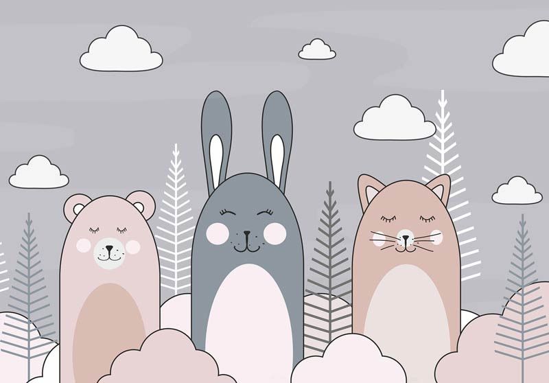 Fotobehang Kat, Konijn en Teddybeer