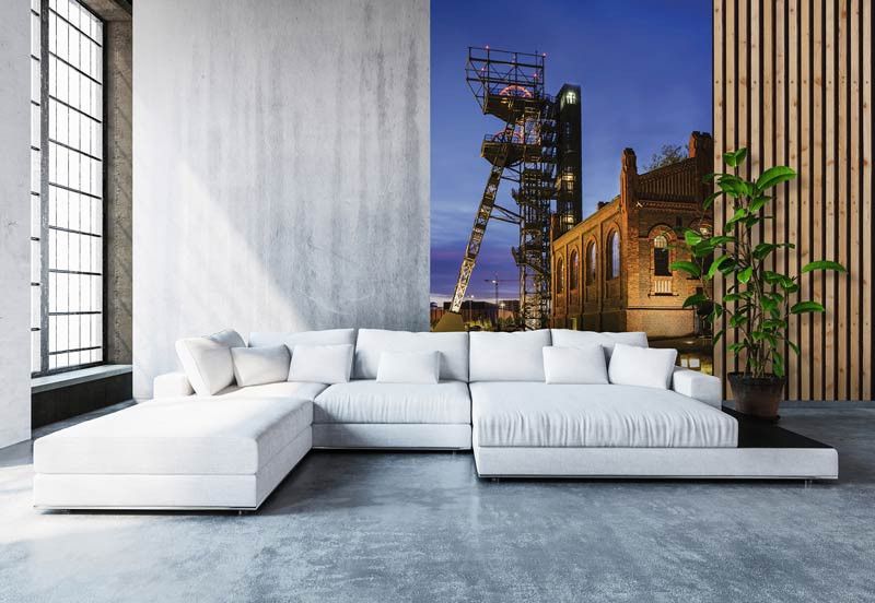 Vliesbehang van het historische kolenmijnmuseum in de Poolse stad: Katowice.