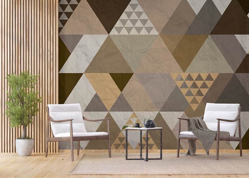 Een speelse combinatie van klassieke vormen en moderne tinten vind je in het fotobehang Klassieke Driehoeken. De kleuren in warme grijs- en beigetinten en de strakke lijnen maken dit behang stijlvol en tijdloos.