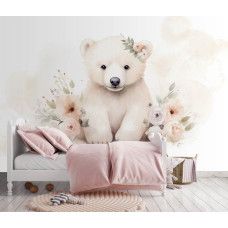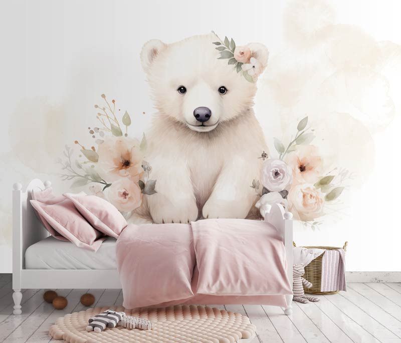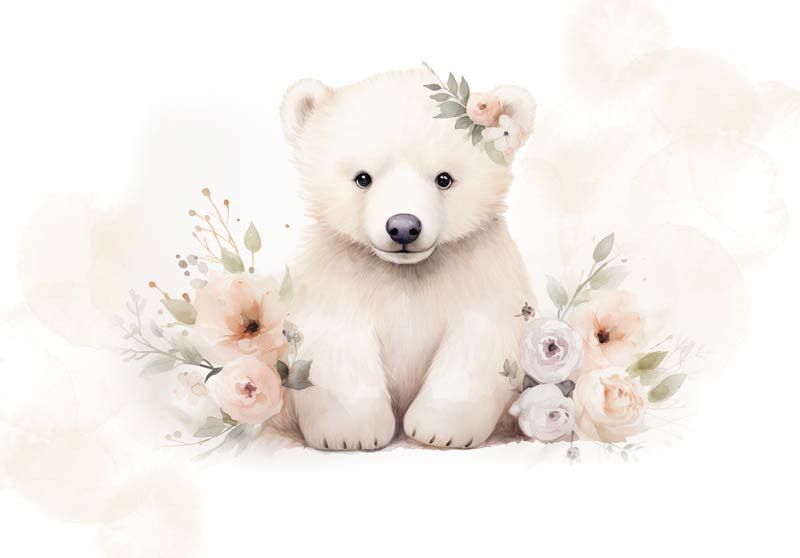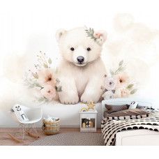 Voeg een vleugje natuurlijke schoonheid en zachtheid toe aan de babykamer of kinderkamer met ons Fotobehang Kleine Ijsbeer en Bloemen. Dit fotobehang toont een schattige ijsbeer te midden van delicate bloemen, waardoor een rustige en betoverende sfeer ontstaat.