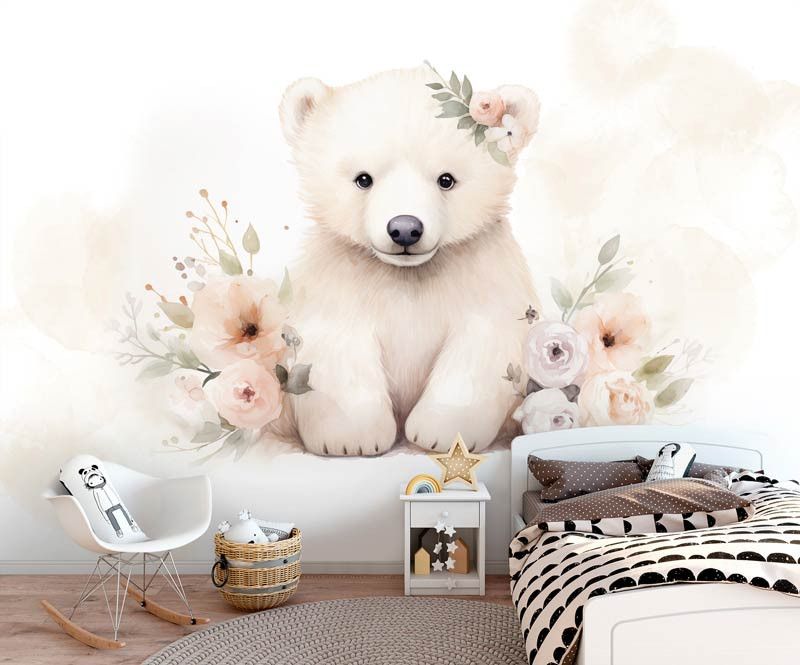 Met ons fotobehang op maat kun je elke muur omtoveren tot een betoverend tafereel van een ijsbeer en bloemen. De gedetailleerde print en zachte kleuren zorgen voor een kalmerende en magische omgeving, terwijl het duurzame materiaal lang meegaat. Laat je inspireren door de lieflijke wereld van ijsberen en bloemen met dit prachtige fotobehang.