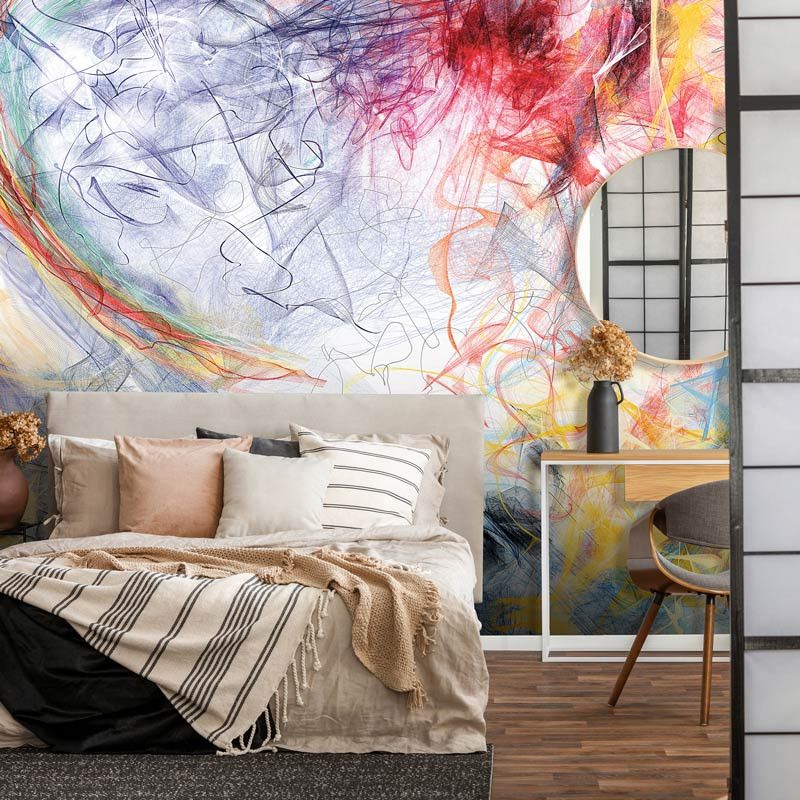 Vlies fotobehang van een prachtig kleurrijk, abstract kunstwerk. Staat geweldig in de: woonkamer, slaapkamer, keuken, hal, kantoor, horecagelegenheid of iedere andere ruimte.