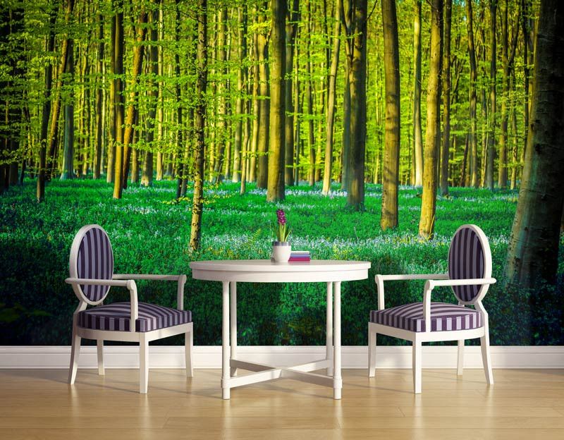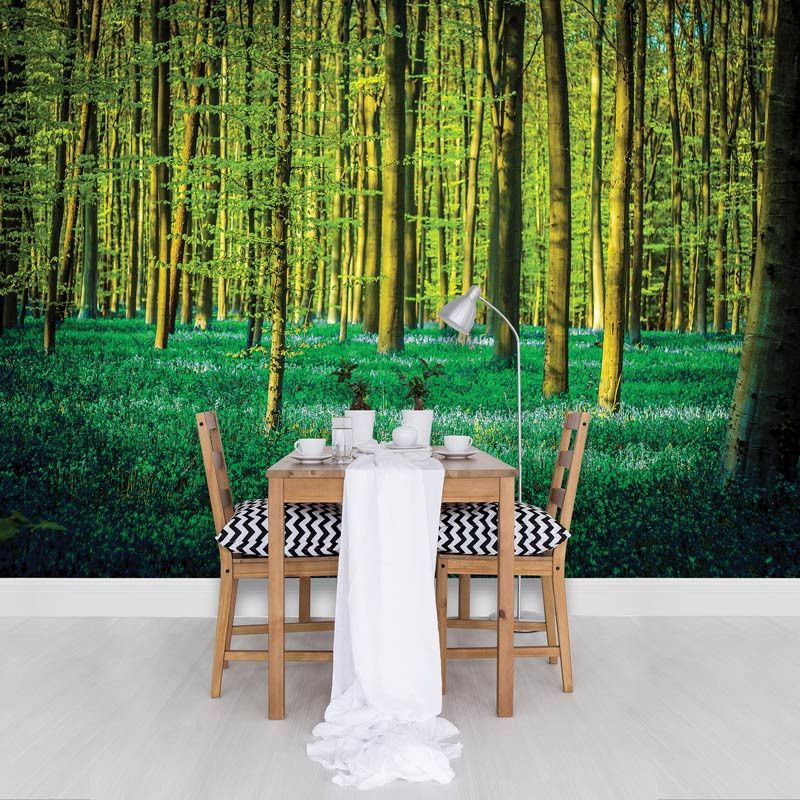 Het fotobehang van het groene bos is de perfecte aanvulling op iedere ruimte.