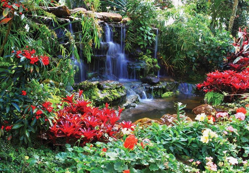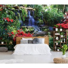 Het fotobehang van de kleurrijke jungle waterval is de perfecte aanvulling op iedere ruimte.