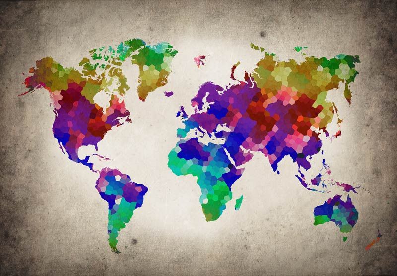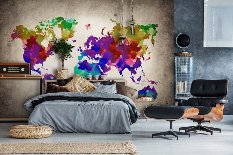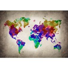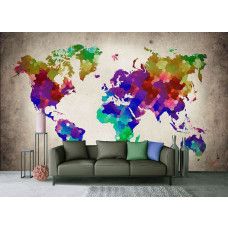 Vlies fotobehang van prachtige, abstracte, kleurrijke wereldkaart. Staat geweldig in de: woonkamer, slaapkamer, keuken, hal, kantoor, horecagelegenheid, school of iedere andere ruimte.