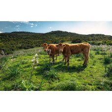 Twee runderen voelen zich zichtbaar goed op de weelderige groene weiden op Sardinië.