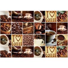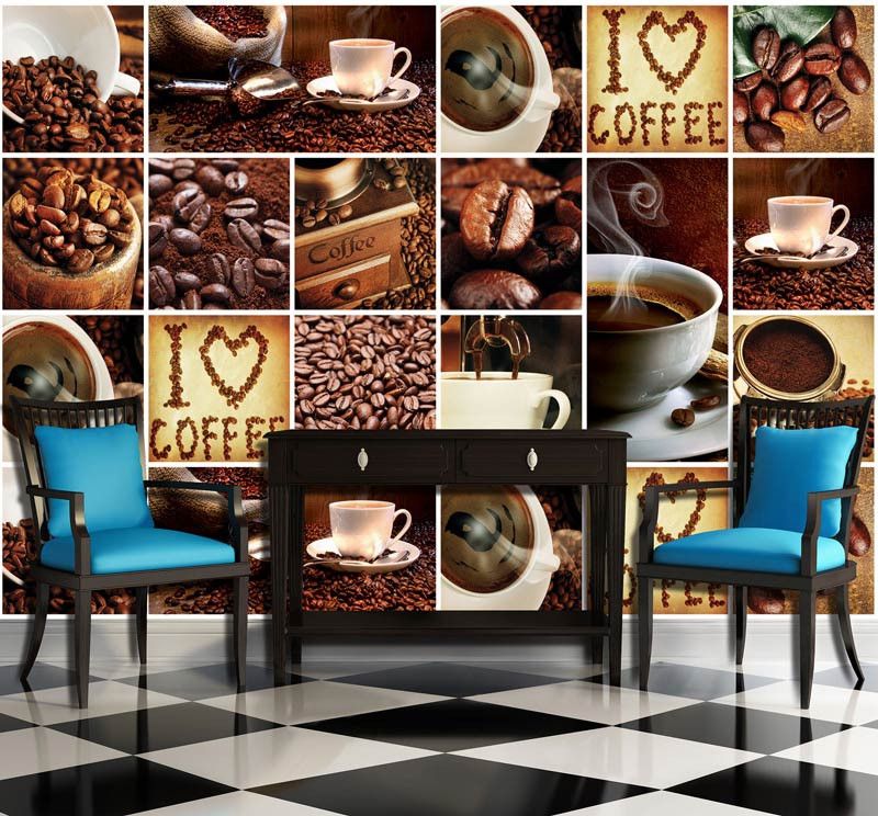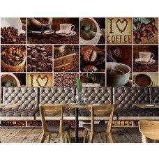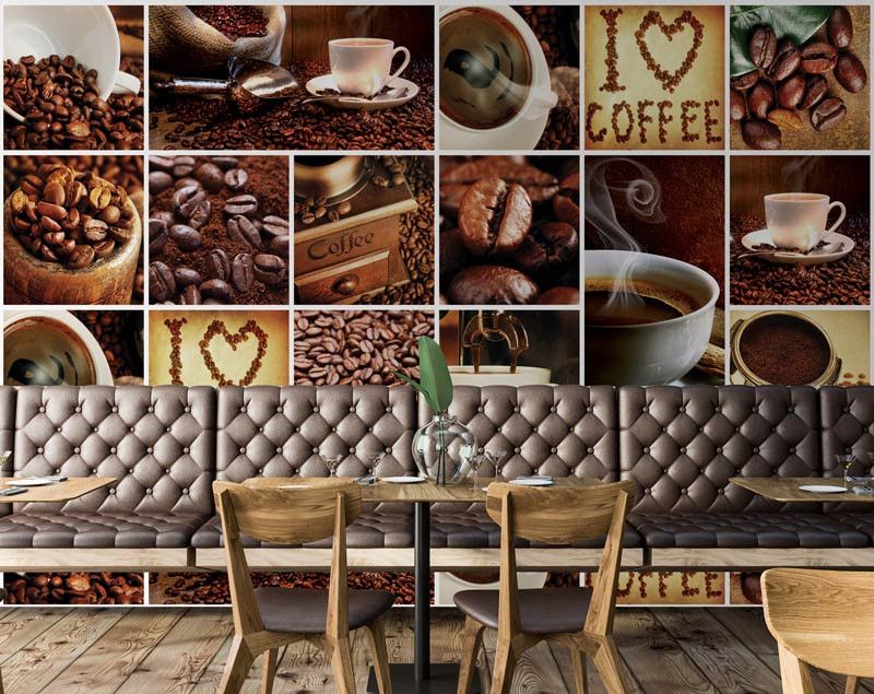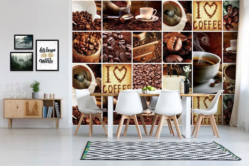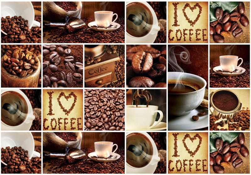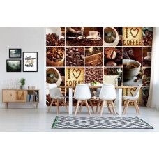 Vlies fotobehang van een collage vol met alles voor de koffieliefhebber.