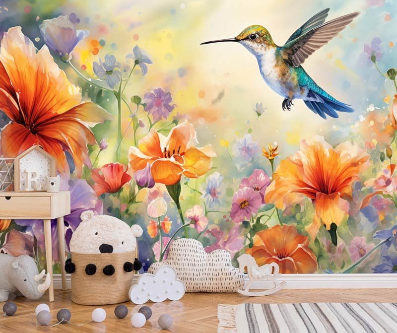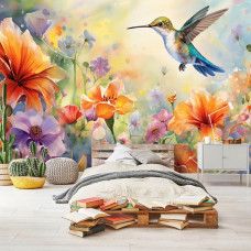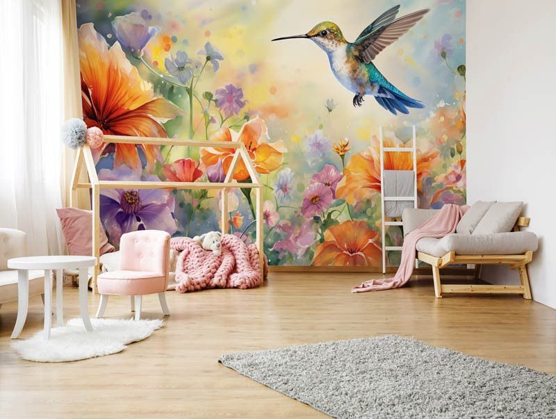 Breng de pracht van de natuur in huis met ons Fotobehang Kolibrie. Dit betoverende fotobehang toont een kleurrijke kolibrie in volle vlucht, omringd door weelderige bloemen. Het brengt een vleugje magie en vreugde in elke ruimte.