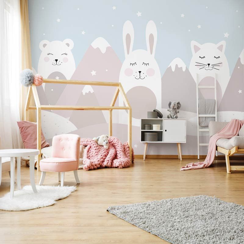 Creëer een schattige en speelse sfeer in de kinderkamer met ons Fotobehang Kat, Konijn en Teddybeer. Dit prachtige fotobehang toont een trio van lieve dieren die samen avonturen beleven, waardoor een gevoel van warmte en gezelligheid ontstaat in elke hoek van de kamer. Ideaal voor kinderen die dol zijn op schattige diertjes en fantasierijke verhalen, dit behang stimuleert creativiteit en verbeelding.