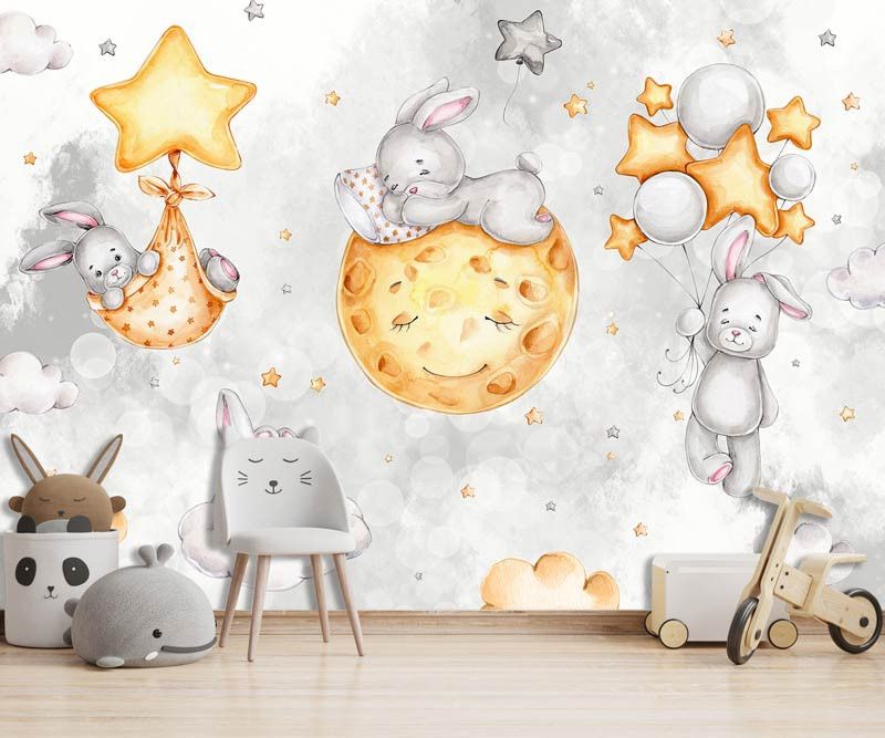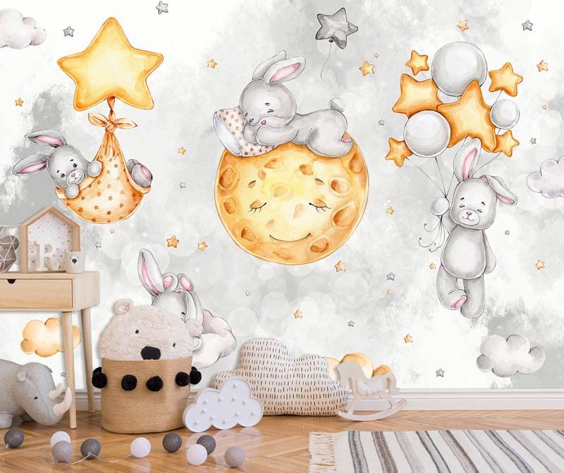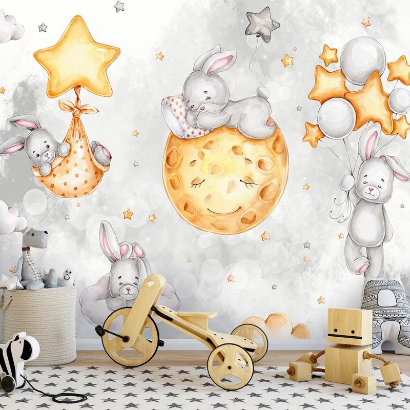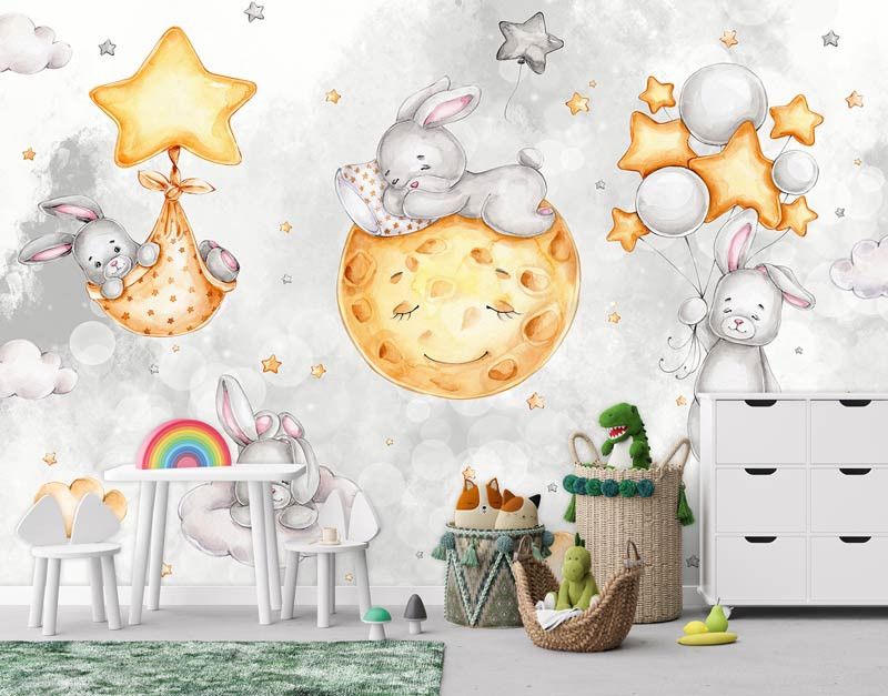 Creëer een dromerige sfeer in de kinderkamer met ons Fotobehang Konijntjes in de Wolken. Laat je betoveren door de schattige afbeelding van konijntjes die spelen in de wolken en breng een vleugje fantasie in elke ruimte. Dit fotobehang is perfect voor het toevoegen van een speels en charmant element aan de kinderkamer en zal zeker de verbeelding van je kleintjes stimuleren.