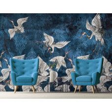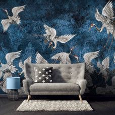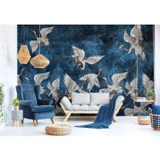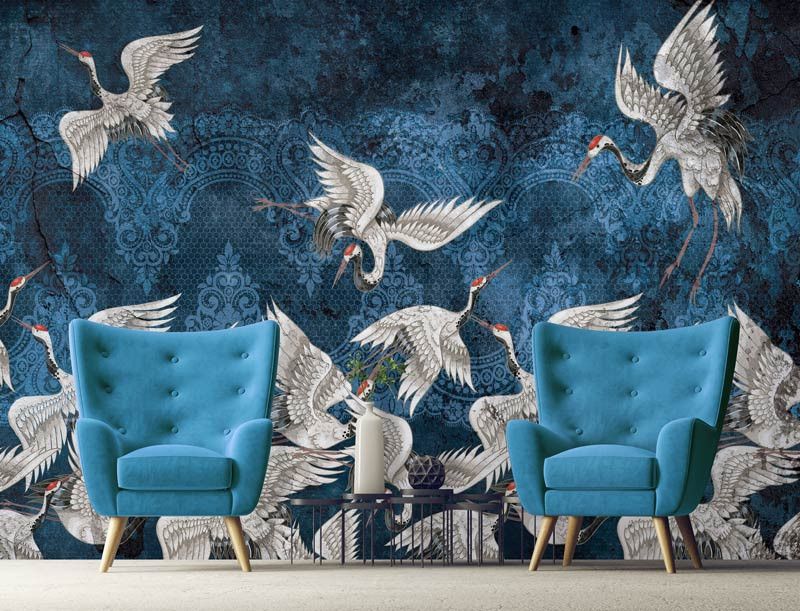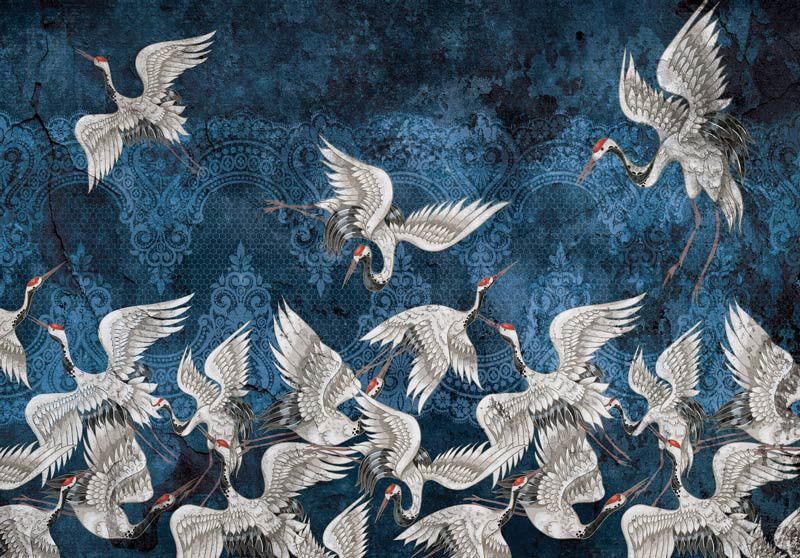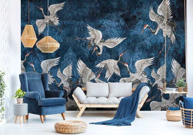 Het fotobehang van de kraanvogels is een echte eyecatcher en zorgt voor een luxe uitstraling in elke ruimte.