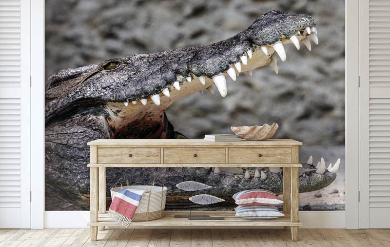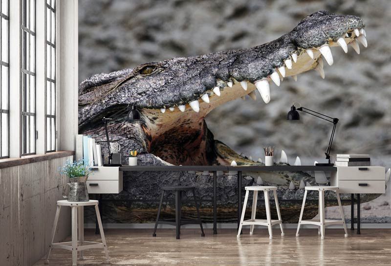 Het fotobehang van de krokodil is een unieke aanvulling op elke ruimte.