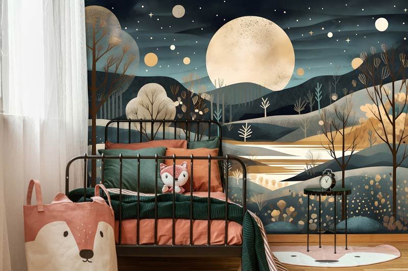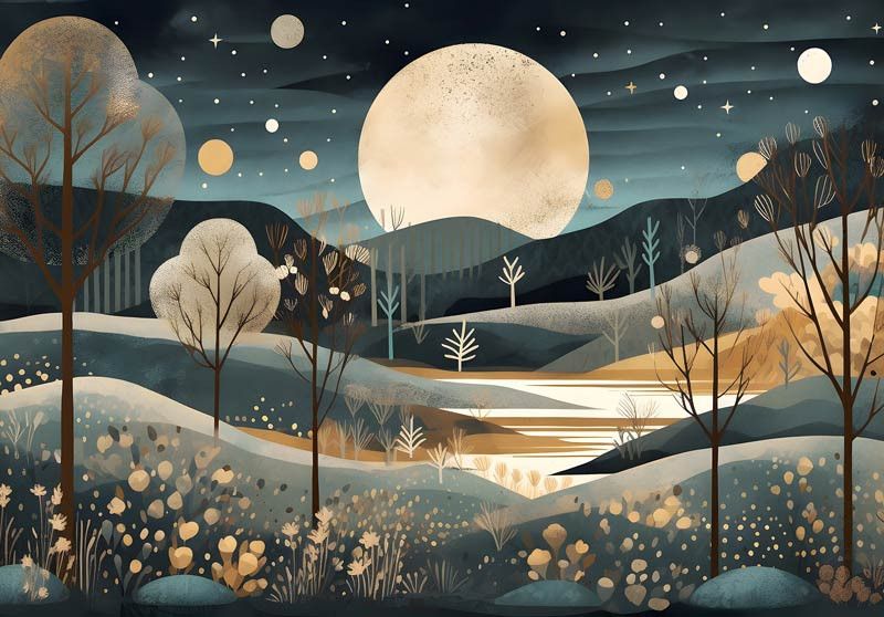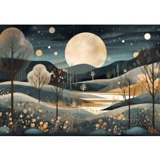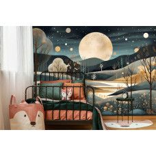 Creëer een betoverende en mystieke sfeer in je interieur met ons Fotobehang Kunstzinnige Nachtlandschap. Laat je meevoeren naar een magische wereld van sterren en maanlicht en geniet van de rustgevende ambiance die dit fotobehang met zich meebrengt.