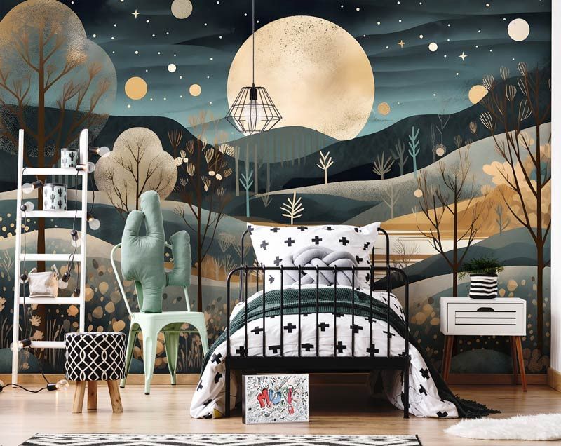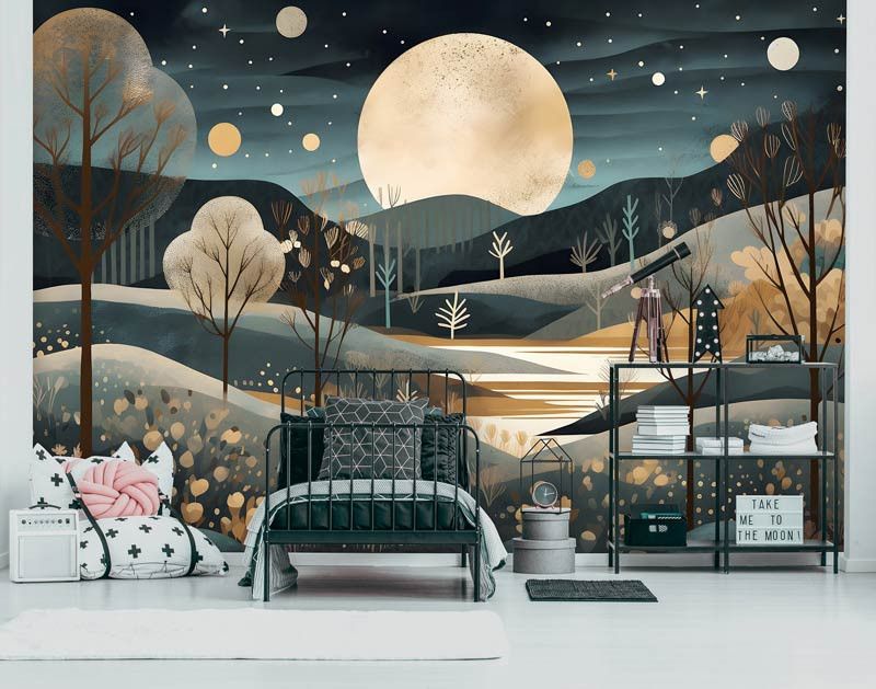 Dit fotobehang is perfect voor het creëren van een rustige en ontspannen omgeving in de woonkamer, slaapkamer of kantoor. Laat je inspireren door de schoonheid van de nacht en breng een vleugje mysterie in je interieur.