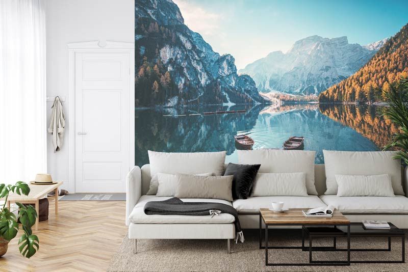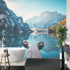 Ons fotobehang wordt met vakmanschap afgedrukt op hoogwaardig materiaal, waardoor elk detail van het meer tot leven komt. Bestel vandaag nog jouw fotobehang op maat en breng de natuurlijke pracht van Lago di Braies naar binnen.