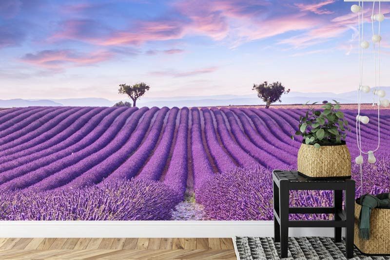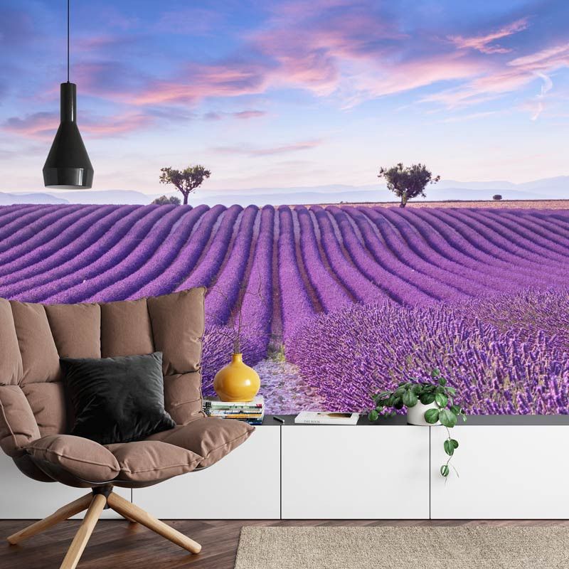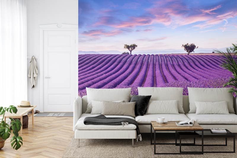 Met ons fotobehang kun je elke dag genieten van het uitzicht op uitgestrekte lavendelvelden, ongeacht het seizoen. Creëer een ontspannende oase in je huis of kantoor, waar je kunt wegdromen bij de natuurlijke schoonheid van deze idyllische landschappen.
