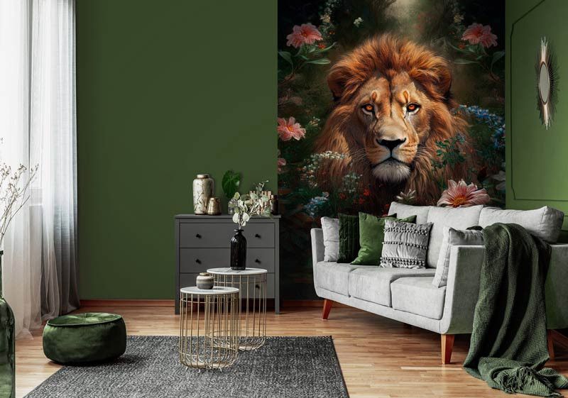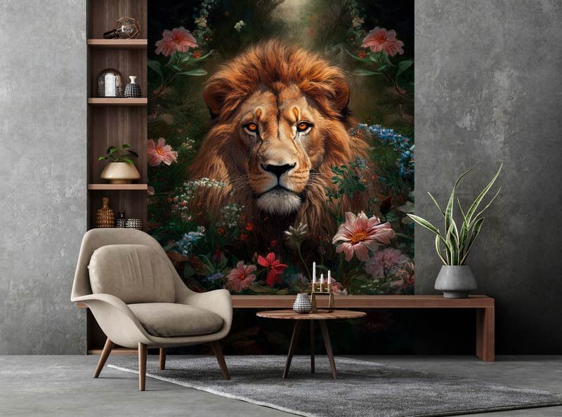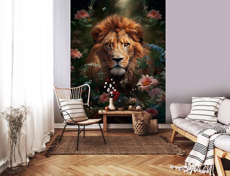 Het fotobehang dient als een artistieke uitdrukking van zowel wilde schoonheid als natuurlijke sereniteit, waardoor het een ideale keuze is voor iedereen die zijn interieur wil verrijken met een statement. Of het nu gaat om het decoreren van een woonkamer, slaapkamer of een commerciële ruimte, het fotobehang leeuw en bloemen biedt een visueel indrukwekkende en sfeerverhogende toevoeging aan uw decor.