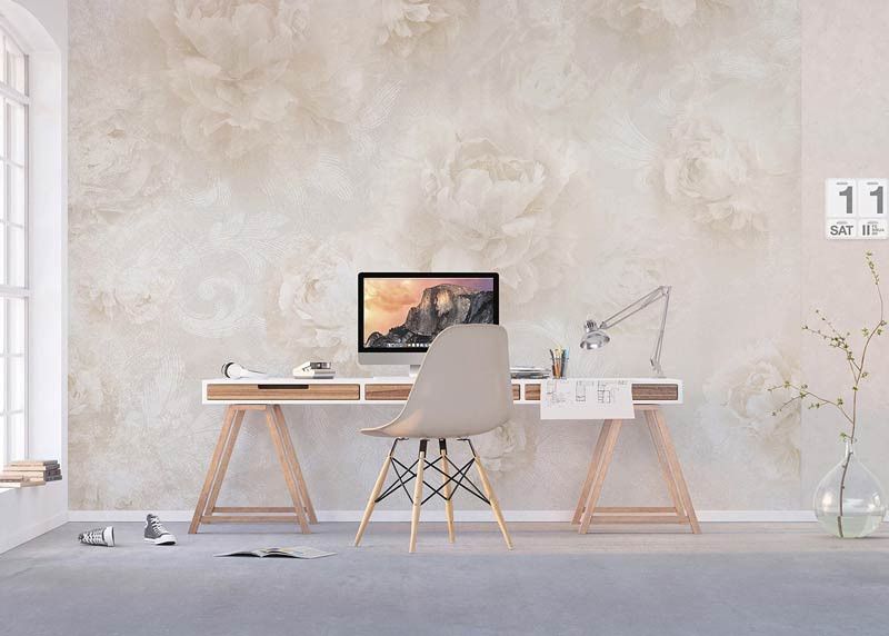 Voeg een zachte, subtiele sfeer toe met het fotobehang van lichtbeige bloemen. De neutrale tinten en gedetailleerde weergave geven een rustige en verfijnde uitstraling.