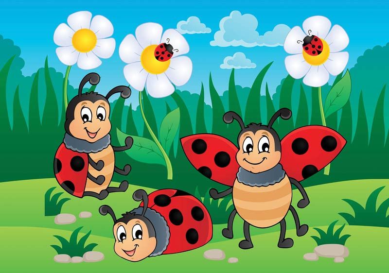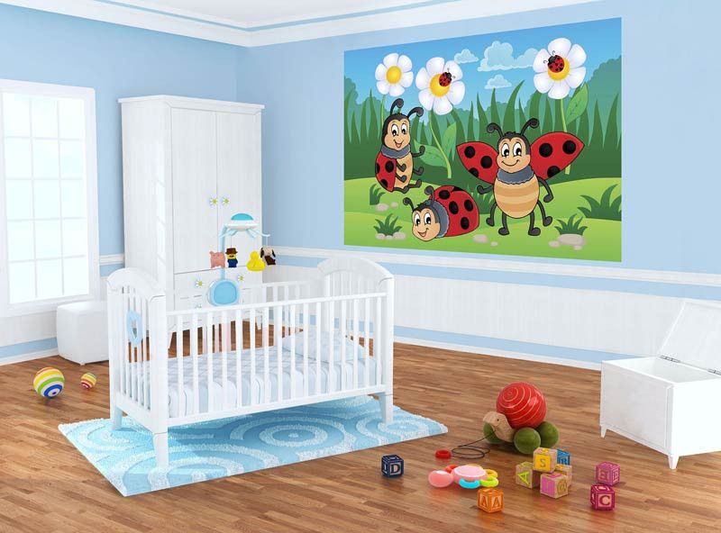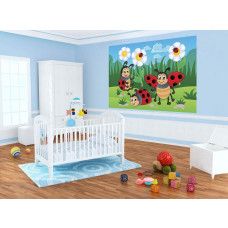 Vliesbehang voor de allerkleinsten. Het fotobehang van deze vrolijke lieveheersbeestjes tovert elke kinderkamer om tot een waar paleis!