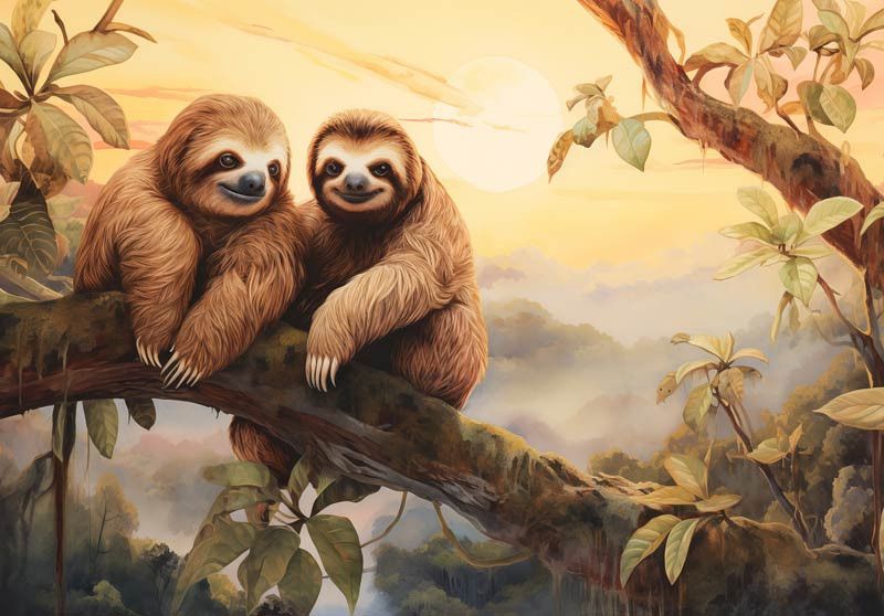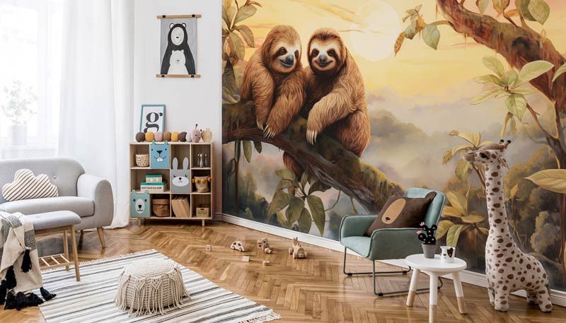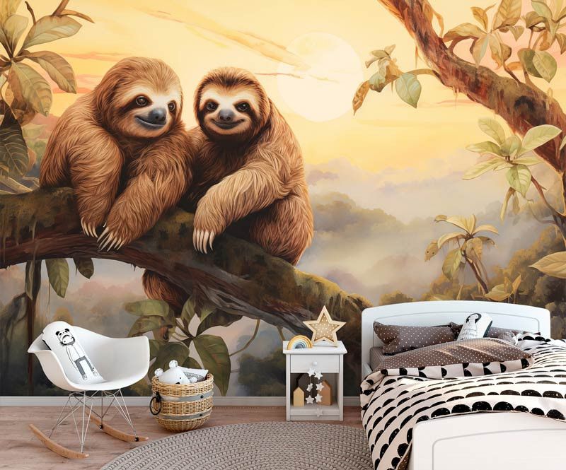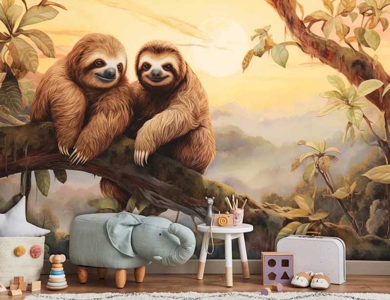 Laat de betovering van de jungle tot leven komen in de kinderkamer met ons Fotobehang Luiaards in de Jungle. Dit charmante fotobehang toont luiaards die rustig tussen de groene bladeren slingeren, waardoor een gevoel van rust en avontuur ontstaat. Het brengt de natuurlijke schoonheid van de jungle rechtstreeks naar de muren van de kinderkamer.