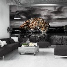 Fotobehang Luipaard Zwart-Wit Achtergrond