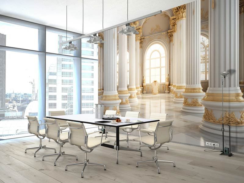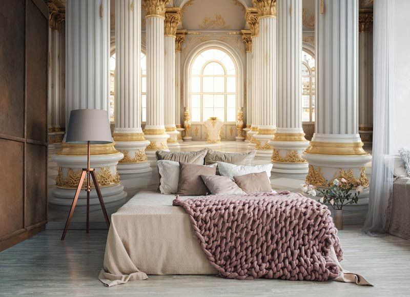 Fotobehang Luxe Gebouw met Gouden Pilaren 3D