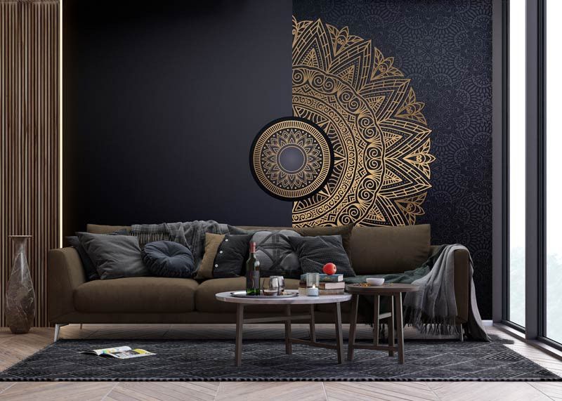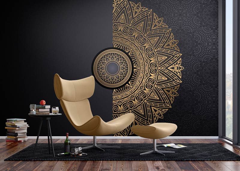 Breng een spirituele en luxueuze sfeer in je interieur met het fotobehang Luxe Gouden Mandala. De symmetrische mandalapatronen in rijke goudtinten zorgen voor een rustgevende en elegante uitstraling. Dit behang past perfect bij een oosters of bohemien interieur.