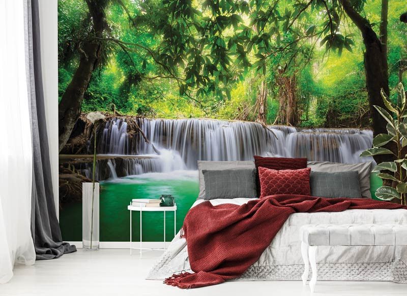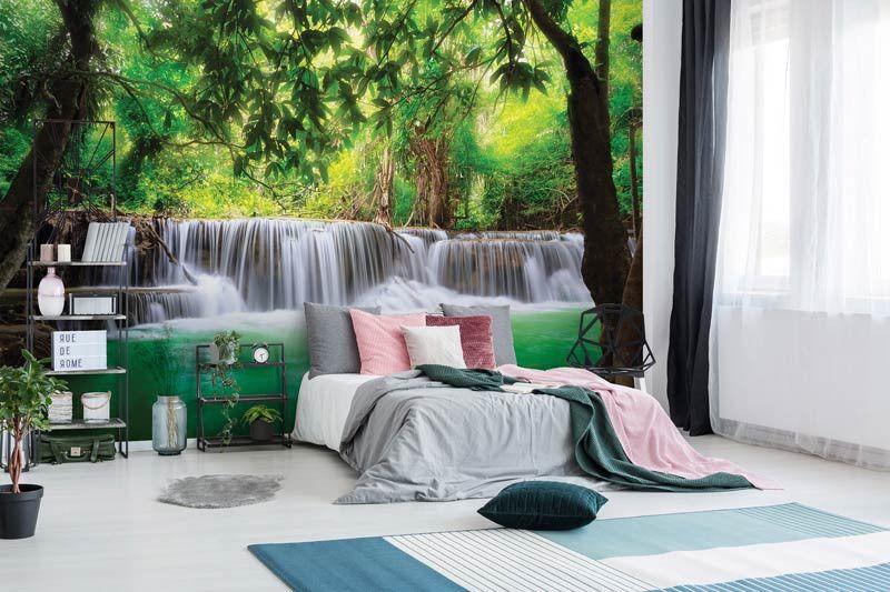 Het fotobehang van de waterval is een echte blikvanger in de: woonkamer, slaapkamer, autogarage, hal, keuken, kantoor, hobbyruimte of iedere andere ruimte.