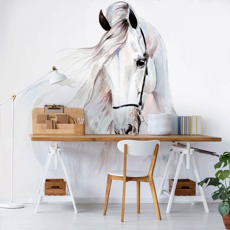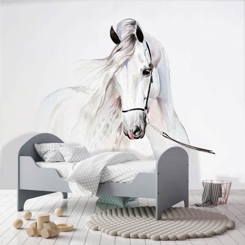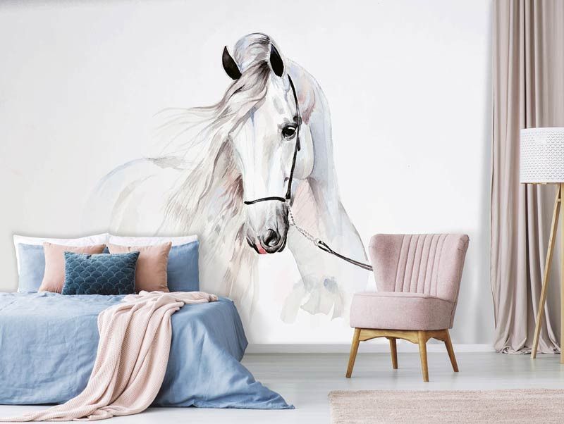 Met ons fotobehang op maat kun je elke muur omtoveren tot een levendig tafereel van een majestueus wit paard. De verfijnde uitstraling en duurzame materialen zorgen voor een langdurige en luxueuze muurdecoratie. Laat je betoveren door de koninklijke pracht van een wit paard met dit elegante fotobehang.
