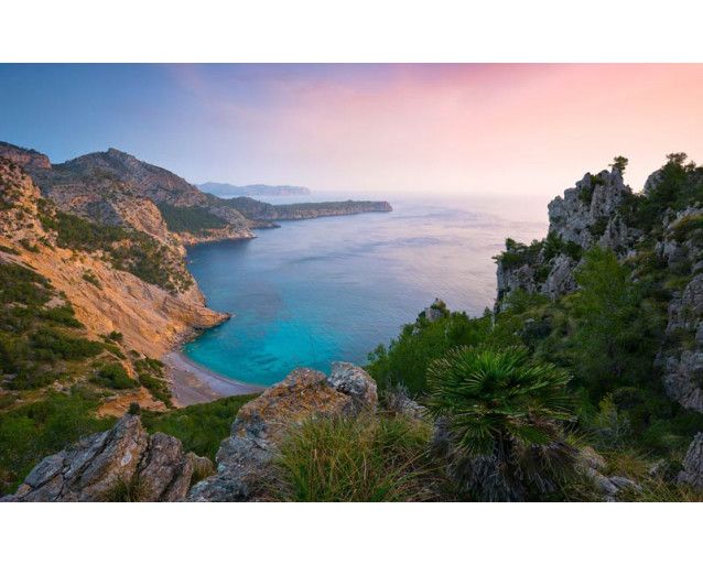 Mallorca van zijn rustige kant: de Platja del Coll Baix strekt zich uit in een schilderachtige, natuurlijke omgeving.
