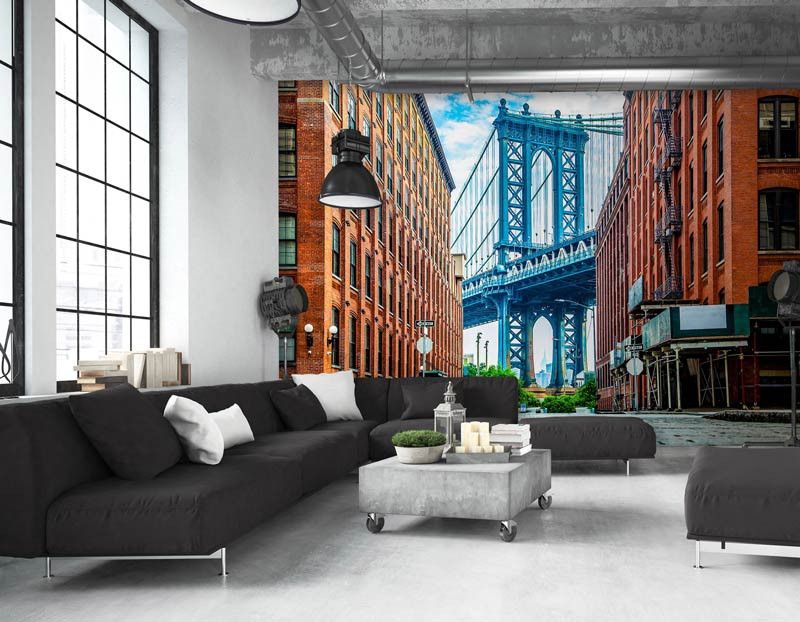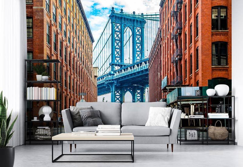 Breng de iconische skyline van New York City in je huis met ons Fotobehang Manhattan Bridge tussen de Gebouwen. Dit indrukwekkende ontwerp toont de beroemde Manhattan Bridge, omringd door hoge wolkenkrabbers, perfect voor een moderne en stedelijke sfeer in je interieur. Ideaal voor de woonkamer, kantoor of studeerkamer.