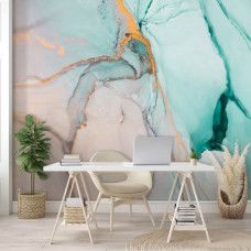Fotobehang van een gekleurde, abstracte, marmeren muur.