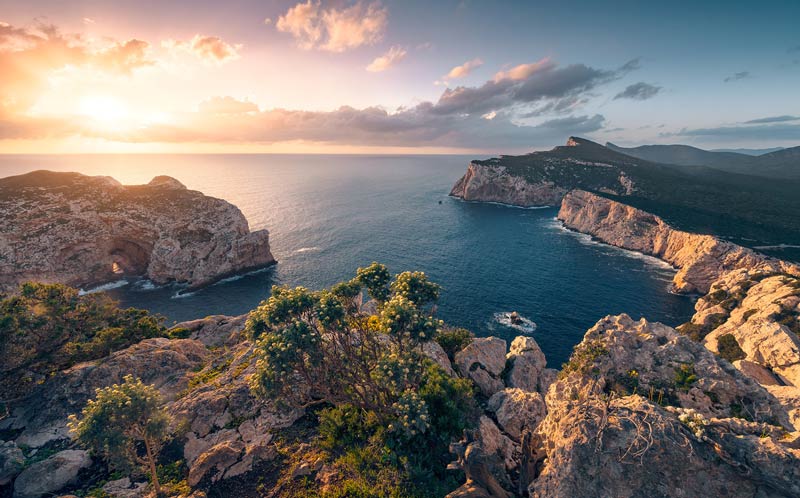 De Capo Caccia biedt een spectaculair beeld: de witte kalkstenen kliffen van het schiereiland Piana omlijsten de turkooisblauwe Middellandse Zee.