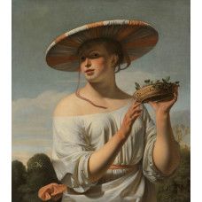 Fotobehang van het schilderij: Meisje met een brede hoed van Caesar Boëtius van Everdingen. Het topstuk uit het Rijksmuseum haarscherp op fotobehang.