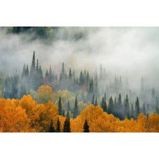 Fotobehang Mist Boven het Herfstbos