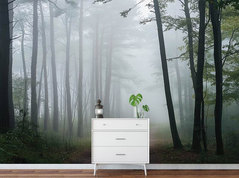 Het fotobehang is op maat te bestellen, zodat het perfect aansluit op jouw muur. Dankzij de hoge kwaliteit van de print komt de mistige sfeer subtiel en realistisch tot zijn recht.