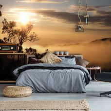 Vlies fotobehang een prachtig, mistig landschap.