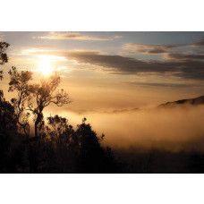 Fotobehang Mistig Landschap.