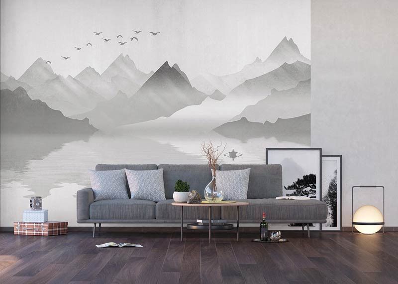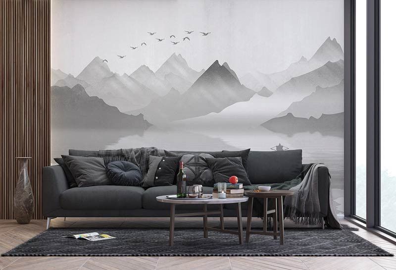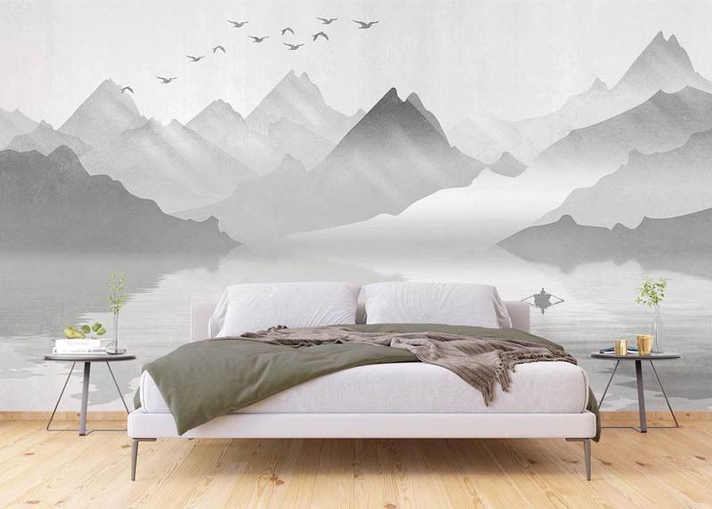 Geniet van het adembenemende uitzicht op mistige bergen met dit natuurgetrouwe fotobehang. De zachte tinten blauw en grijs creëren een rustgevende sfeer, ideaal voor ontspanningsruimtes. Dit fotobehang is gemakkelijk op maat te bestellen en brengt de natuur tot leven in je interieur.