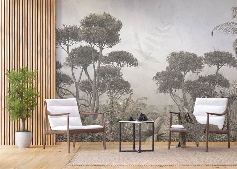 Voor een gedurfde en stijlvolle look kies je het fotobehang Monochrome Jungle. De jungleprint creëert een indrukwekkend contrast en geeft je interieur een moderne, artistieke uitstraling. De gedetailleerde bladeren en takken brengen een gevoel van diepte en dynamiek.
